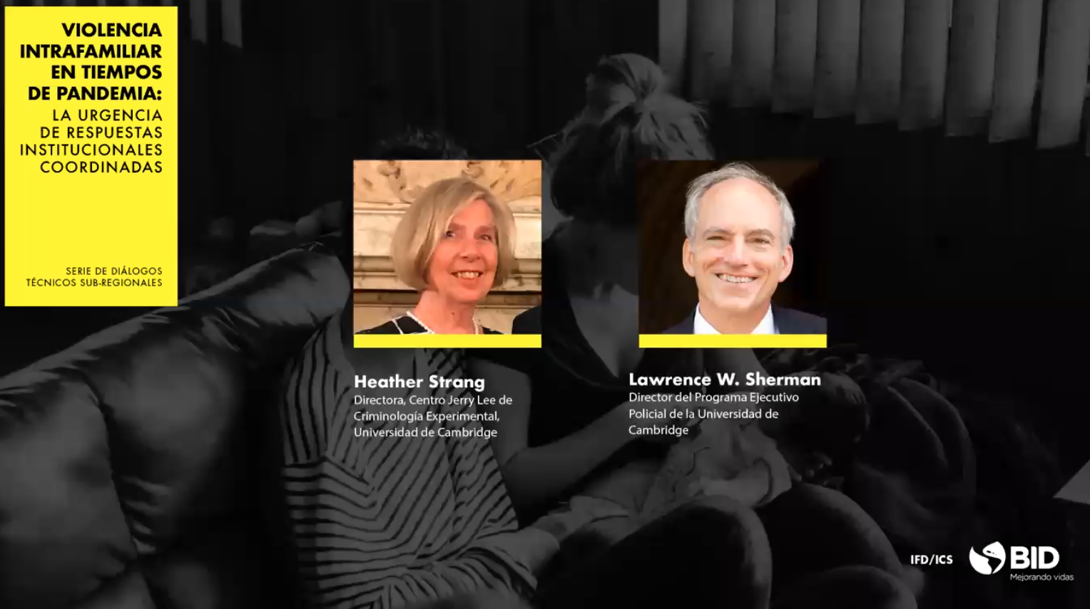 150 senior police and cabinet ministers from major Latin American countries heard Cambridge Centre’s Heather Strang and Lawrence Sherman speak for 20 minutes in early May about a COVID-driven strategy for policing domestic abuse. Watch the video below.